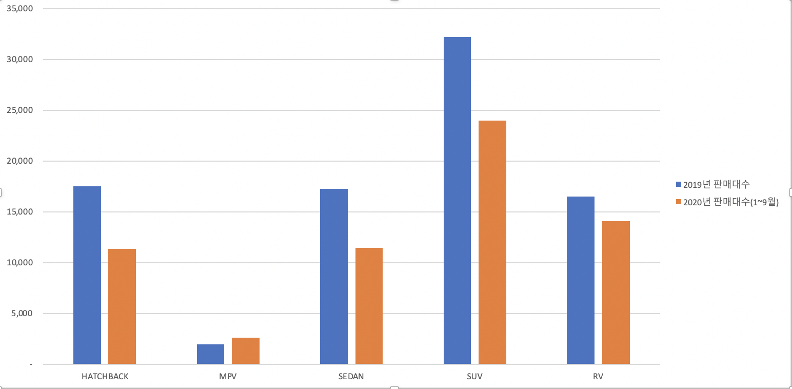 모든 차종에서 소형이 가장 큰 판매대수를 보이는 것이 큰 특징이다.