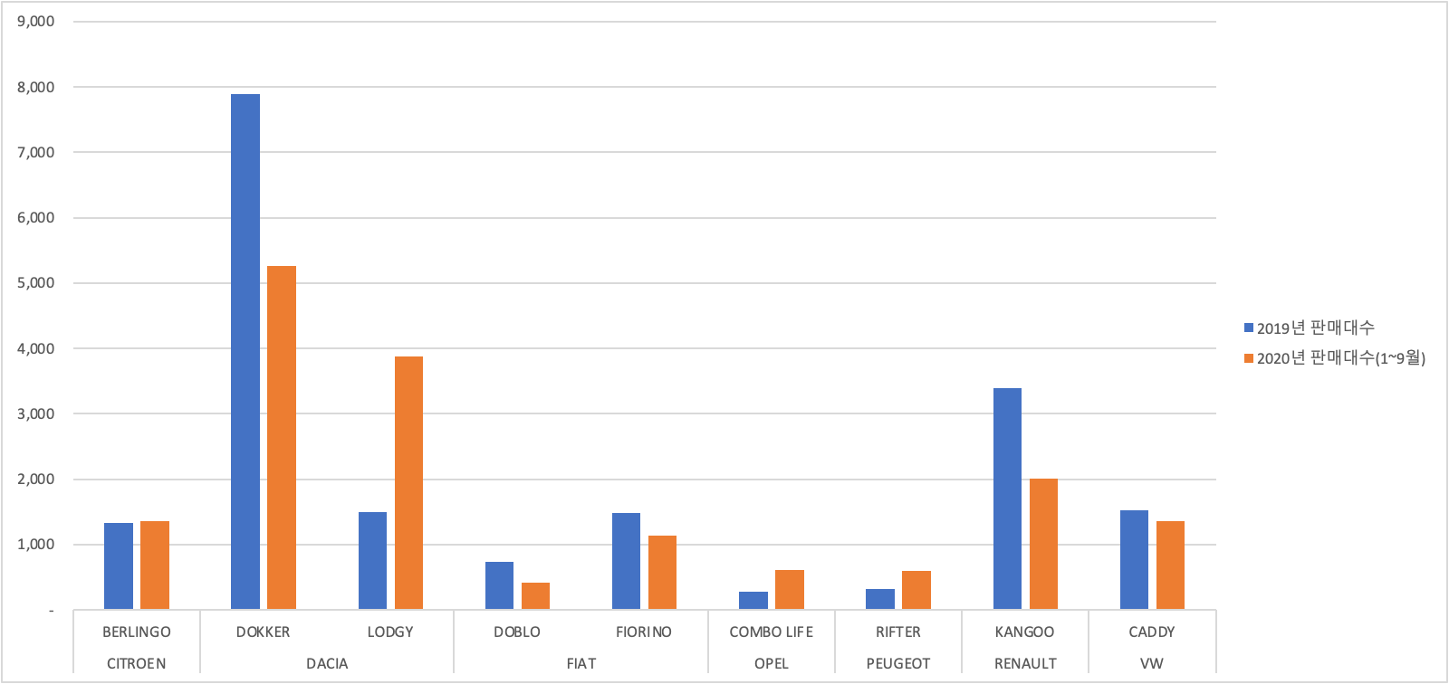 가장 많이 팔리는 DACIA의 소형 RV DOKKER와 준중형 LODGY, 르노의 소형 RV KANGOO가 아주 대표적이다.