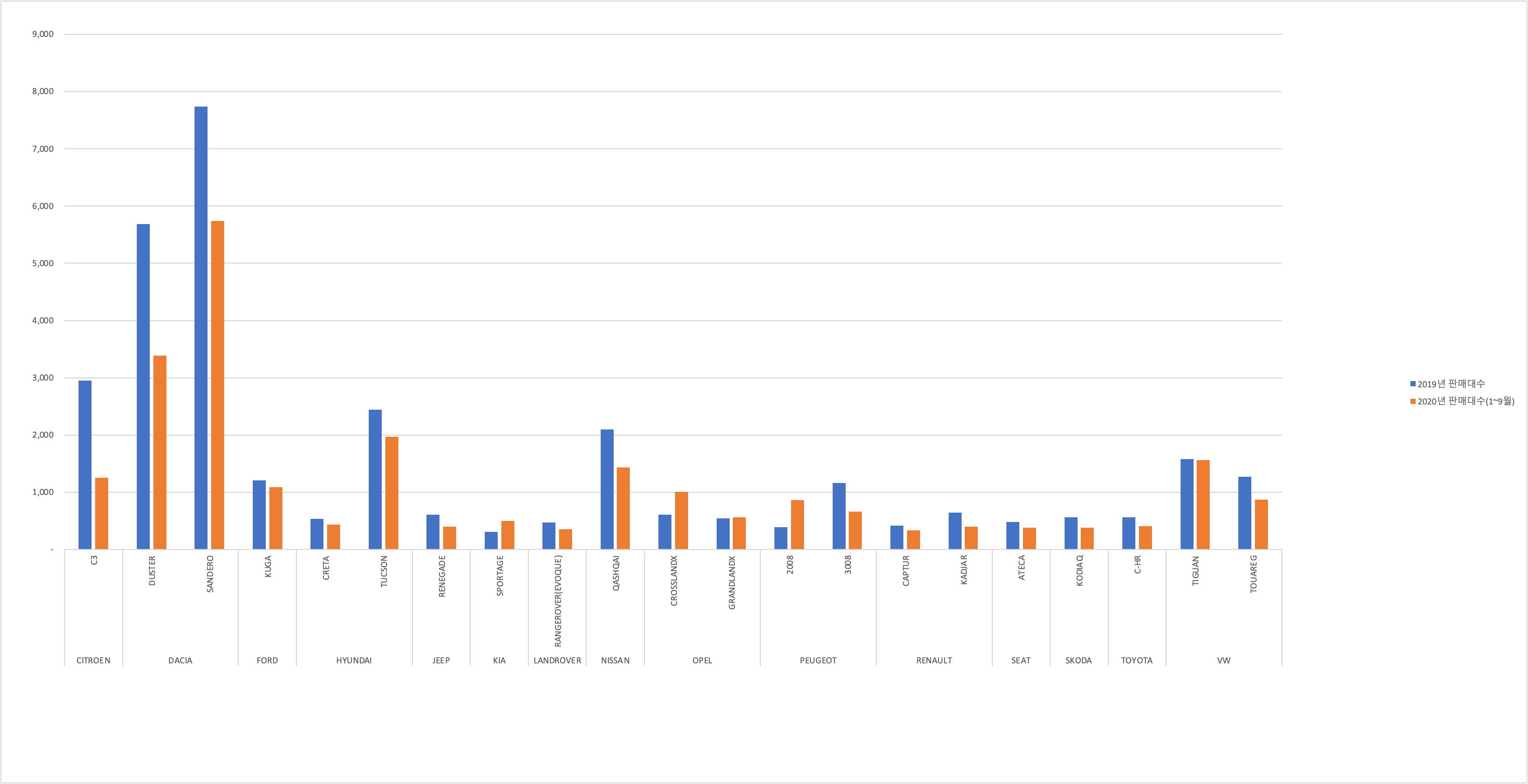 SUV시장의 경우, 역시 DACIA가 부동의 1위이다.
